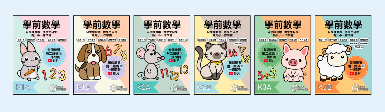適合K1-3學生,每個練習附二維碼,一掃即到YouTube影片,供學生自學自完成練習,並檢查答案!